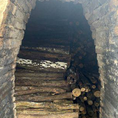 After carbonization, the charcoal is removed from the kiln and spread in a covered, open-air area for cooling and weathering for at least 14 days before being packaged.